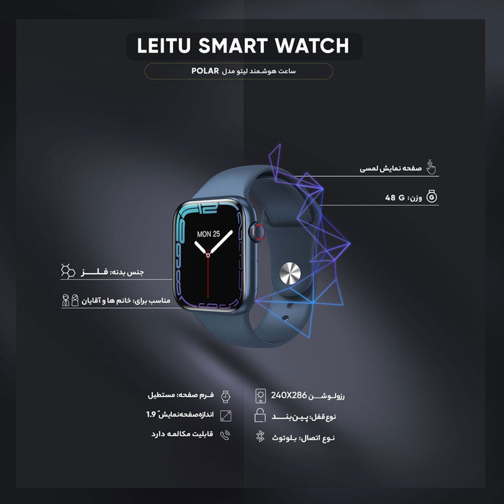 | دیگر قابلیتهای ساعت | صفحه lcd بسیار روان و با کیفیت، مکالمه و پاسخ دهی، دارای 18 واچ فیس زیبا، دارای میکروفون و اسپیکر، دارای هشدار لرزشی، شارژر وایرلس |