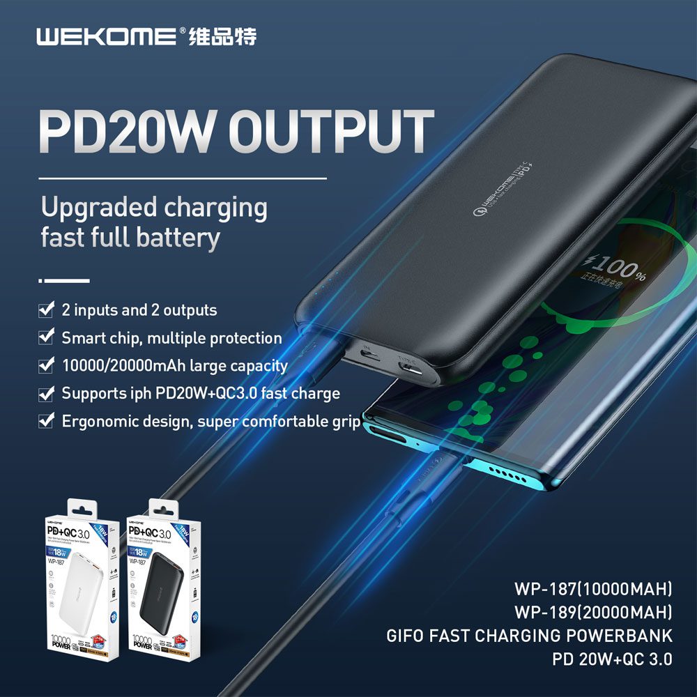پاوربانک ویکام مدل WP-189 ظرفیت 20000 میلی آمپر ساعت