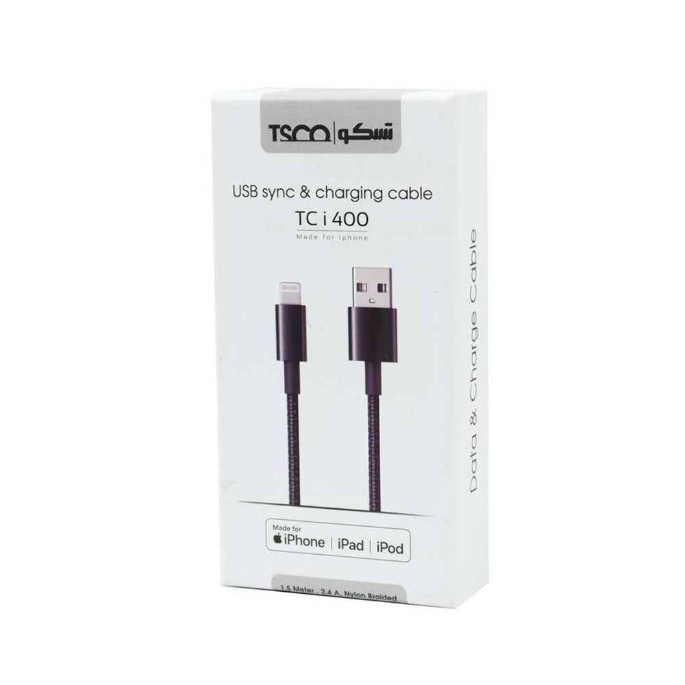 کابل شارژ و انتقال داده ها USB به لایتنینگ تسکو مدل TC i 400 طول 1.5 متر