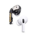 Airpods Pro 2021 به رنگ سفید عرضه بازار شد. وزن هر کدام از ایرپاد ها 5.4 گرم است. برای شروع، نگاهی به سر Airpods Pro بیندازید که بزرگتر از نمونه های قبلی است و دو دریچه میکروفن مشکی را در خود